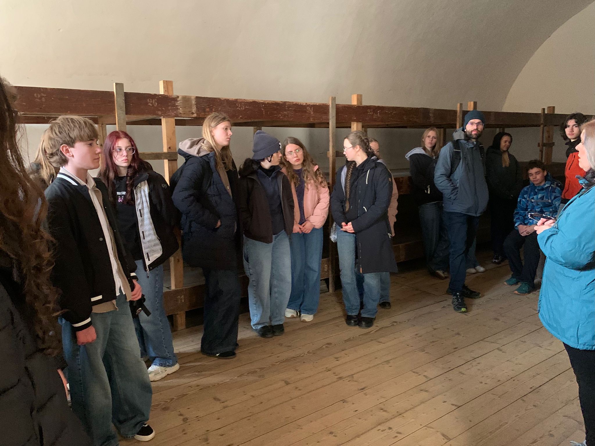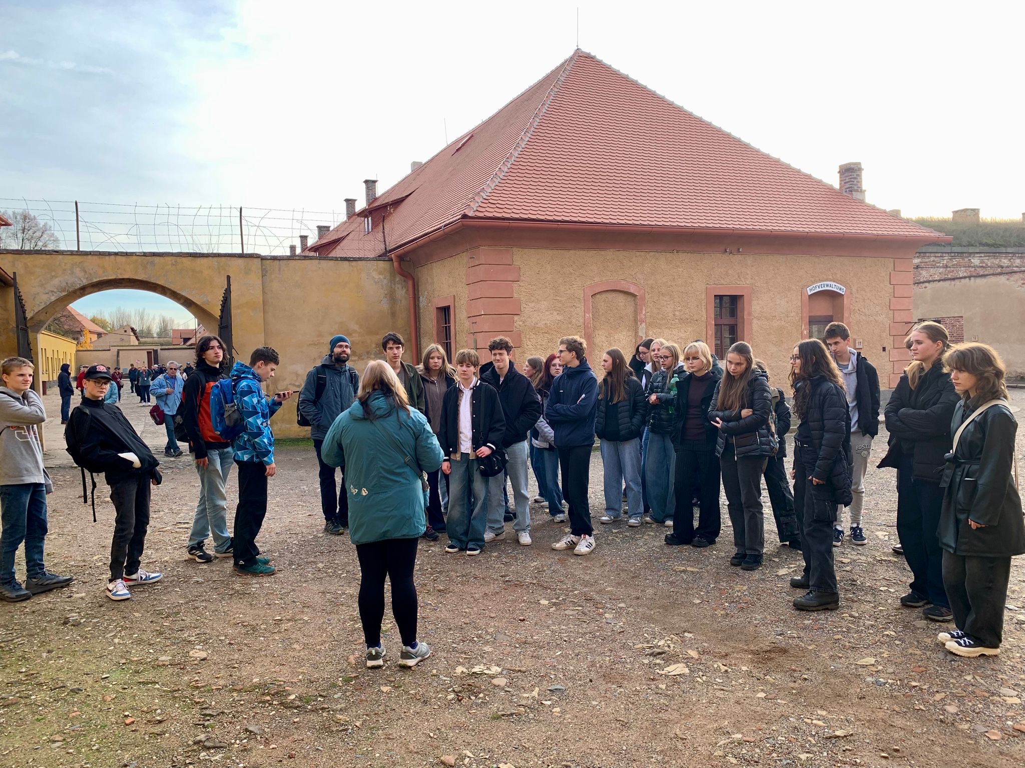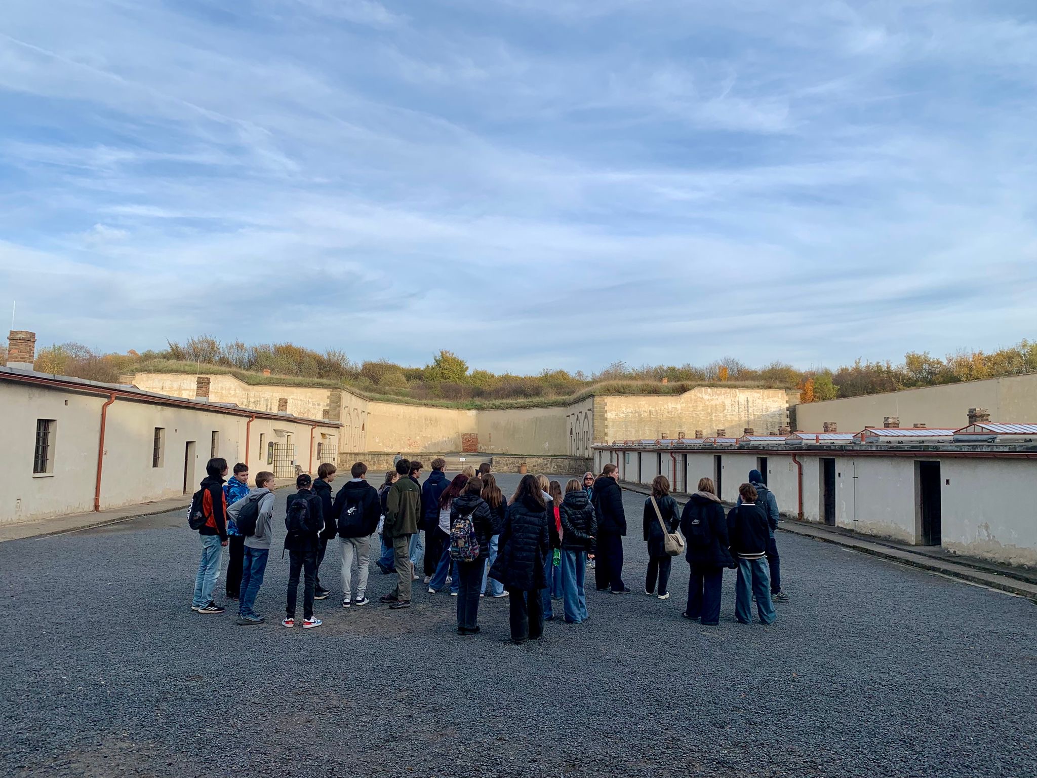 Po kratší obědové pauze jsme zamířili do Malé pevnosti, kde jsme si prohlédli bývalou věznici gestapa. Energická průvodkyně nám přiblížila mrazivou realitu vězňů, jejichž proviněním často bylo pouze to, že se postavili proti nacistickému režimu nebo byli součástí odboje. V celách se tísnily i desítky lidí, a o tom, jak málo životního prostoru tito lidé měli, se žáci mohli opět přesvědčit přímo v prostoru těchto cel.